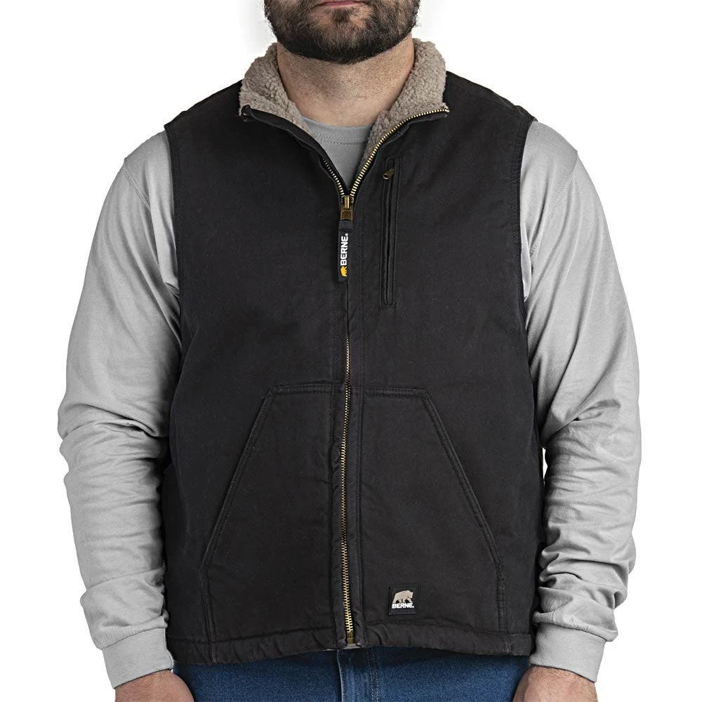 The BERNE Black Canyon Vest is made of 12 ounce cotton duck for the shell and polyester for the lining.