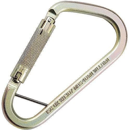 The Carabiner Large Eye Twist Lock Steel is made from cold forged and heat-treated steel.