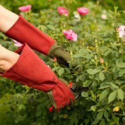 Rose Gloves, Thorn-Proof Suede, Ruby Red With Olive Palms, Unisex By West County